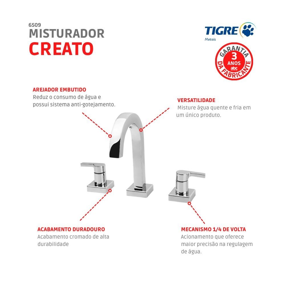 Misturador Para Lavatório De Mesa Bica Alta Cromado Creato Cromado Fabrimar