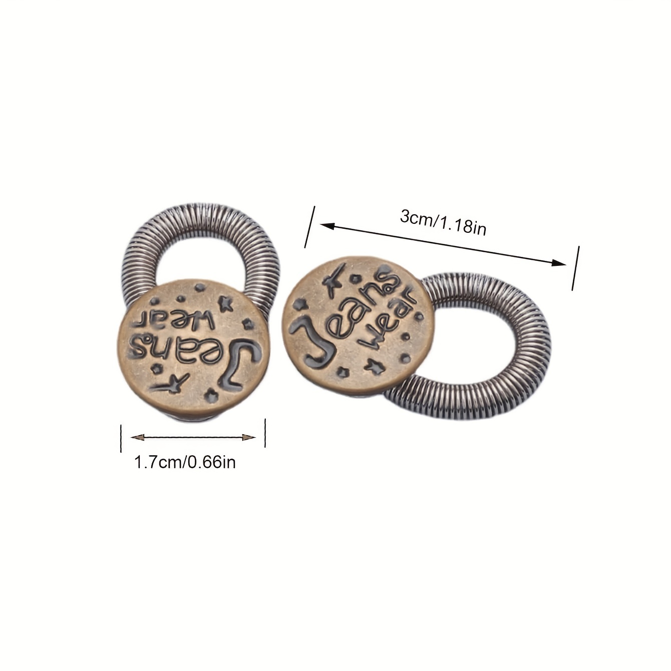 ✨ Características do produto: ✔ Ajuste de cintura com um clique - ajusta a circunferência imediatamente ✔ Adequado para jeans, calças, saias 📏 Especificações: Diâmetro do botão: 17mm • Material: Liga durável + aço inoxidável Os produtos incluem: ✓ 5 fivelas de extensão de cintura com mola 1. Todos os produtos são fotografados na vida real, mas podem ocorrer pequenas diferenças de cor devido a iluminação ou razões de exibição. Por favor, consulte a cor real recebida! 2. O tamanho é medido manualmente, mas pode haver alguns pequenos erros. Por favor, consulte o objeto físico recebido para precisão.