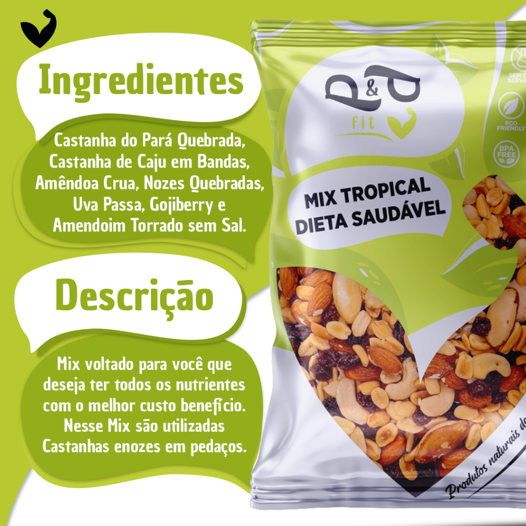 Mix Castanha Tropical Nuts Saudável Nozes, Amêndoas, Castanha Para/Caju Uva Passa Amendoim Gojiberry