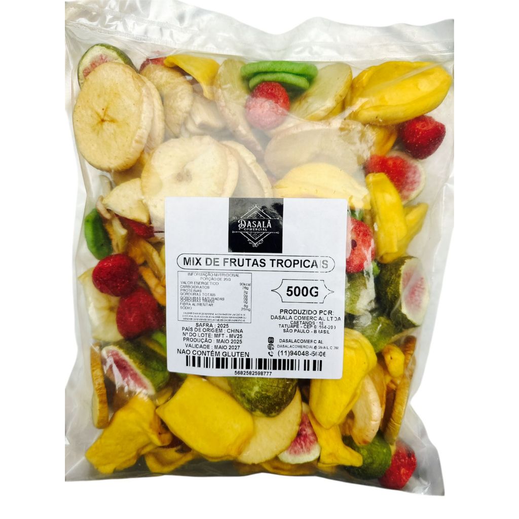 Mix de Frutas Tropicais Chips 100% Natural e Crocante Uma explosão de sabor e saúde em cada mordida! Descubra o snack perfeito para o seu dia: o Mix de Frutas Chips combina o melhor da natureza em um mix leve, saboroso e crocante. Composto por banana, jaca, mamão, kiwi, maçã, figo e morango, desidratados de forma especial, nosso mix preserva o sabor natural das frutas sem adição de açúcares e conservantes. ✅ Sem adição de açúcares ✅ Sem conservantes artificiais ✅ Rico em fibras alimentares ✅ Naturalmente crocante e saboroso ✅ Prático para qualquer momento do dia Perfeito para quem busca energia natural, praticidade e muito mais saúde na rotina! Ingredientes: Banana, Jaca, Mamão, Kiwi, Maçã, Figo e Morango ( CHIPS ). -CARACTERÍSTICAS: O mix de frutas liofilizadas é uma opção prática e nutritiva para quem busca um lanche saudável. A liofilização é um processo de desidratação que preserva os nutrientes, sabor e textura das frutas, sem a necessidade de conservantes. Textura crocante: Diferente das frutas desidratadas convencionais, as liofilizadas costumam ter uma textura mais crocante. Preservação nutricional: Mantém vitaminas, minerais e fibras essenciais.ºSabor intenso: Como a água é removida, os sabores ficam mais concentrados. Leveza e praticidade: São fáceis de transportar e armazenar, ideais para lanches rápidos, trilhas e viagens. Longa vida útil: A ausência de umidade impede a proliferação de microrganismos, aumentando a durabilidade. Versatilidade: Podem ser consumidas puras, adicionadas a cereais, iogurtes ou usadas em receitas. Conservação: A conservação envolve algumas práticas essenciais para manter a qualidade e o sabor por mais tempo. Como essas frutas passam por um processo de remoção da umidade, elas são bastante sensíveis à umidade do ambiente. Mantenha em local seco, longe da luz direta solar e do calor excessivo. Evite contato com ar, após aberto mantenha em recipiente hermético para manter a crocância.