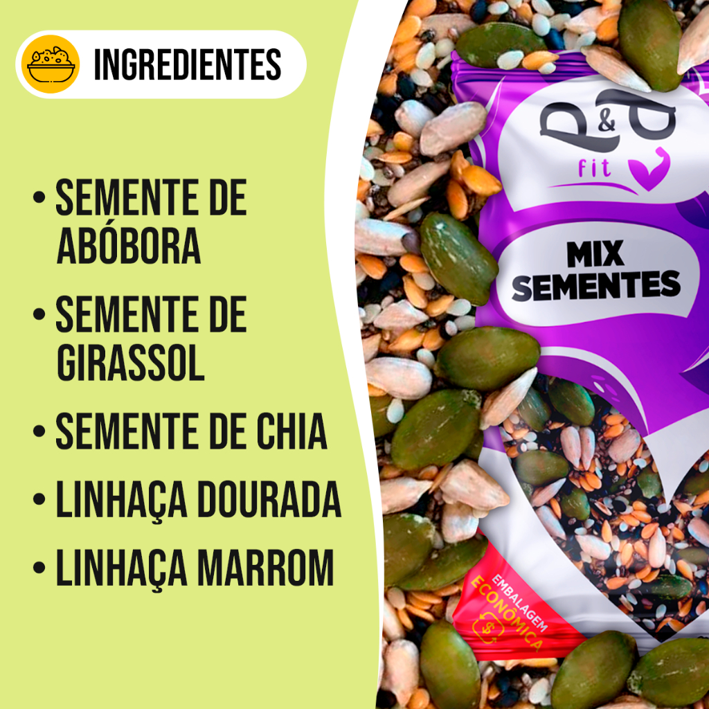 Mix de Sementes Premium P&P Fit – Nutrição e Saúde em Cada Colherada O Mix de Sementes da P&P Fit é uma combinação poderosa e nutritiva de chia, semente de girassol, abóbora e linhaça dourada e marrom . Fonte de fibras, ômega-3 e proteínas vegetais, é ideal para complementar iogurtes, vitaminas, saladas e receitas fitness. Um produto 100% natural e funcional, sem conservantes e rico em benefícios para o organismo. ℹ Benefícios: ✅ Chia, girassol, abóbora e linhaça em equilíbrio perfeito ✅ Fonte de fibras, ômega-3 e proteínas vegetais ✅ Aumenta a saciedade e favorece o trânsito intestinal ✅ Ideal para adicionar a iogurtes, frutas, saladas e receitas ✅ Produto 100% natural, sem conservantes ✅ Embalagem econômica e prática para o dia a dia ℹ Ficha Técnica: ✅ Produto: Mix de Sementes Premium ✅ Marca: P&P Fit ✅ Ingredientes: Sementes de chia, semente de girassol, semente de abóbora , linhaça dourada e marrom ✅ Não contém glúten ✅ Conservação: Local seco, fresco e protegido da luz ✅ Validade: Vide embalagem ✅ Indicação: Uso culinário, funcional ou diário *Imagem Ilustrativa