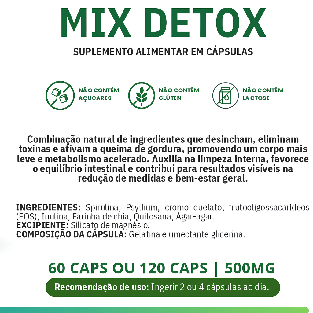 Mix Dtox 120 Cápsulas - Picolinato de Cromo | Psyllium | Quitosana | Spirulina | 500Mg - Nativ