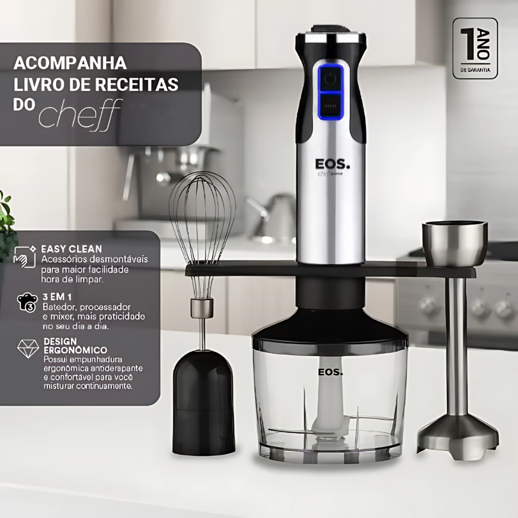 Mixer 3 Em 1 Processador Turbo 850w Inox Eos Mais Potente Brasil 1 Ano Garantia
