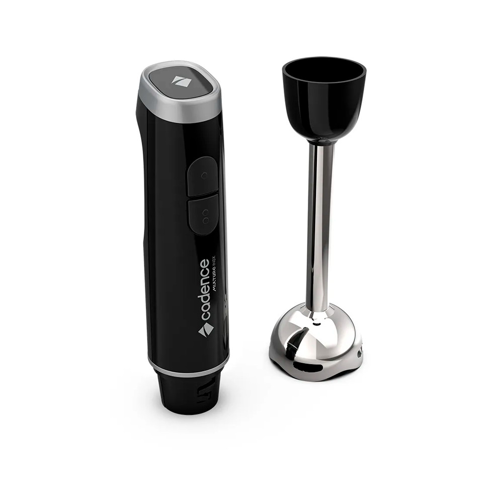 Mixer Cadence MIX370 220V Haste Inox Preto Quem deveria comprar este produto? O Mixer Cadence MIX370 é ideal para quem busca praticidade e rapidez na cozinha, sendo perfeito para preparar sopas, molhos, purês, vitaminas e outras receitas de forma eficiente. É a escolha certa para quem valoriza versatilidade, facilidade de limpeza e um eletrodoméstico compacto e moderno que combina estilo e desempenho. O Mixer Cadence MIX370 é a escolha ideal para quem busca praticidade, rapidez e versatilidade na cozinha. Com design moderno e acabamento em inox, ele combina eficiência e estilo, permitindo preparar uma variedade de receitas com facilidade. Seu motor potente e a haste em aço inox garantem resultados rápidos e consistentes, desde sopas e molhos até vitaminas e purês. CARACTERÍSTICAS: Motor potente para preparo rápido de diferentes receitas. Haste em aço inox durável, resistente e fácil de limpar. Design moderno em preto, elegante e compacto. Ideal para misturar, triturar e bater alimentos diretamente na panela ou recipiente. Botão de acionamento prático para uso contínuo. ESPECIFICAÇÕES TÉCNICAS: Modelo: MIX370 Voltagem: 220V Material da haste: Aço inox Cor: Preto/Inox Tipo de alimentação: Energia elétrica DIMENSÕES DO PRODUTO: Altura: 35 cm Largura: 6 cm Profundidade: 6 cm Peso: 0,9 kg DIMENSÕES DA EMBALAGEM: Altura: 38 cm Largura: 8 cm Profundidade: 8 cm Peso bruto: 1,1 kg GARANTIA: 12 meses pelo fabricante.