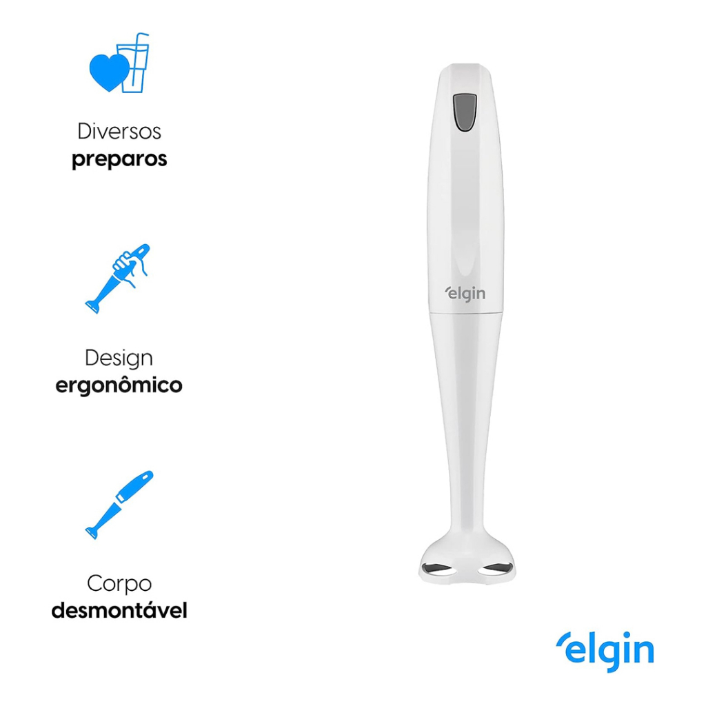 O Mixer Elgin Mix100 220W Branco é a escolha ideal para quem busca praticidade na cozinha. Com design moderno e compacto, ele facilita o preparo de diversas receitas, como sucos, vitaminas, sopas, molhos e cremes. Equipado com um motor potente de 220W, o mixer oferece eficiência e rapidez no preparo dos alimentos, garantindo resultados consistentes em poucos minutos. O Mixer Elgin possui lâminas em aço inoxidável de alta durabilidade, que proporcionam cortes precisos e mistura homogênea dos ingredientes. O corpo ergonômico facilita o manuseio, oferecendo maior conforto durante o uso. Além disso, é fácil de limpar e desmontar, tornando-se um aliado na rotina diária. Ideal para quem busca um aparelho versátil, o Elgin Mix100 é perfeito para criar receitas rápidas e saborosas com praticidade. Compacto e leve, ele se adapta facilmente a qualquer espaço da cozinha. Destaques: - Potência de 200W: Excelente desempenho para misturas rápidas. - Fácil de limpar: Corpo desmontável para uma higienização prática. - Lâmina em aço inoxidável: Resistente e de longa durabilidade. - Corpo desmontável: Fácil de usar e armazenar. - Diversos preparos: Versatilidade para sucos, molhos, cremes e mais. - em 1: Mistura e tritura com eficiência. - 1 ano de garantia: Qualidade e confiança Elgin.