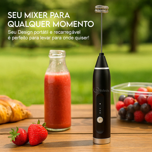 O Mixer Elétrico Portátil Recarregável 2 em 1 foi desenvolvido para quem busca praticidade, potência e design em um só produto. Com ele, é possível bater, misturar e espumar líquidos de forma rápida, facilitando o preparo de cafés, cappuccinos, shakes, molhos, cremes, claras em neve e diversas receitas do dia a dia. Seu design moderno e ergonômico garante conforto durante o uso, sendo extremamente leve e fácil de manusear. A estrutura resistente proporciona durabilidade, enquanto o acabamento sofisticado dá um toque de elegância à sua cozinha. Graças à sua bateria recarregável, o mixer oferece autonomia prolongada, permitindo preparar diversas receitas sem necessidade de estar conectado à tomada. A praticidade se estende à limpeza: suas peças removíveis podem ser higienizadas com facilidade, garantindo um produto sempre pronto para o próximo uso. Com função 2 em 1, o mixer atua tanto como batedor quanto como espumador, tornando-se um aliado versátil tanto em ambientes domésticos quanto em uso profissional. Ele entrega potência eficiente, sem abrir mão da portabilidade, sendo ideal para levar em viagens ou utilizar em diferentes cômodos da casa. O Mixer une tecnologia, eficiência e durabilidade, sendo a escolha perfeita para quem deseja unir modernidade, desempenho e a confiança de uma marca registrada e protegida legalmente. FAQ (5 perguntas e respostas) 1. O mixer é bivolt? Sim, ele é recarregável por USB e funciona em qualquer fonte de energia bivolt. 2. Quais funções ele possui? É 2 em 1: funciona como batedor e espumador, ideal para bebidas e receitas. 3. A bateria dura quanto tempo? A autonomia é suficiente para várias preparações antes da recarga completa. 4. É fácil de limpar? Sim, suas peças removíveis permitem higienização rápida e prática. 5. Posso usar em ambiente profissional? Sim, é indicado tanto para uso doméstico quanto profissional, devido à sua versatilidade.