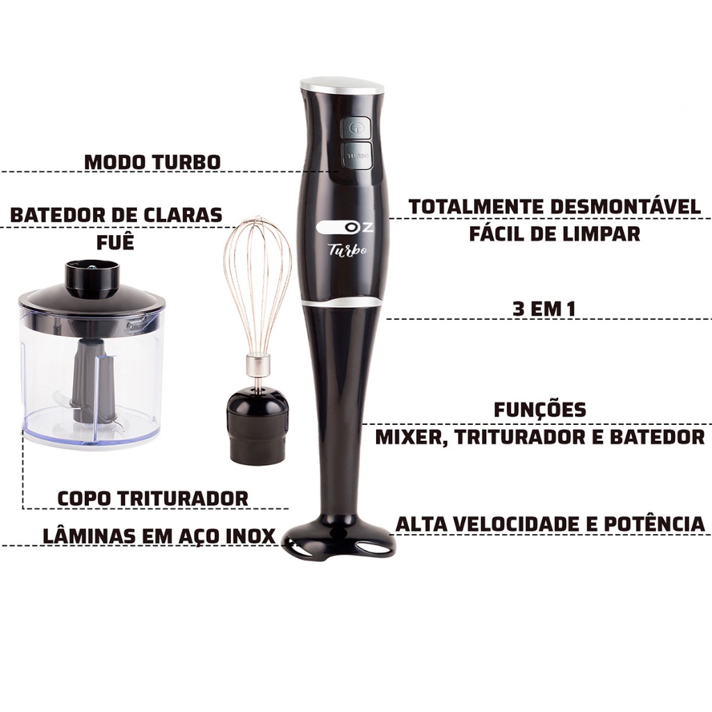 Mixer Turbo Chef 3 Em 1 250w Misturador Triturador E Fuet Sem Fio Portátil Mx4000 Oz