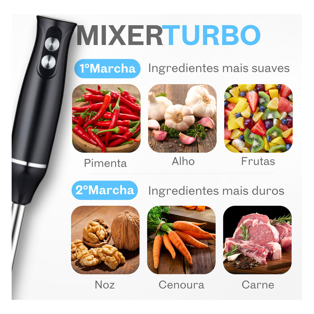 Mixer Multifuncional Misturador Moedor Triturador Batedor Elétrico Sucos Whey Potente Milk Shake Cozinha Bater Leite Cremoso Bebidas Gelada Multiuso 4 em 1 Potência- 110v - 500w 220v - 300w Transforme sua experiência na cozinha com o Mixer Multifuncional 4 em 1. Prático, eficiente e indispensável para otimizar o seu dia a dia, ele oferece múltiplas funcionalidades em um único aparelho compacto, fácil de armazenar e poderoso, com potência. Funções do Mixer Multifuncional: Mixer: Ideal para sopas, molhos e vitaminas. Triturador: Triture frutas, vegetais e outros alimentos em instantes. Batedor: Bata claras, cremes e massas leves com rapidez e precisão. Processador: Pique, fatie e rale ingredientes com perfeição. Principais Características: Design ergonômico para conforto durante o uso. Peças removíveis para facilitar a limpeza. Motor potente, garantindo alto desempenho. Acessórios inclusos para todas as funções. 2 velocidades para maior controle. Conteúdo da Embalagem: 01 Processador. 01 Batedor. 01 Mixer. 01 Copo Medidor. Não perca a oportunidade de revolucionar sua cozinha com este aliado prático e moderno. Adquira agora mesmo o Mixer Multifuncional 4 em 1 e descubra um novo jeito de cozinhar!