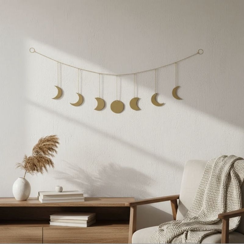 Móbile Fases da Lua Horizontal - Enfeite de Parede para Sala e Quarto Decoração Boho Chic