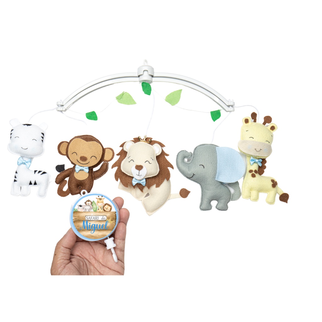 Mobile Musical e Giratório Safari Animais Brinquedo Berço Bebe