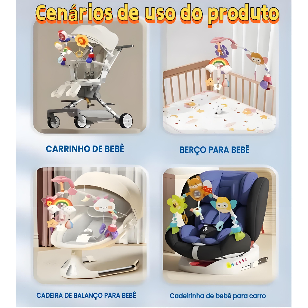 | Móbile Chocalho Para Carrinho e Berço de Bebê Clip Maxi Baby | R$ 78,00 | — | 5.0/5 | — |