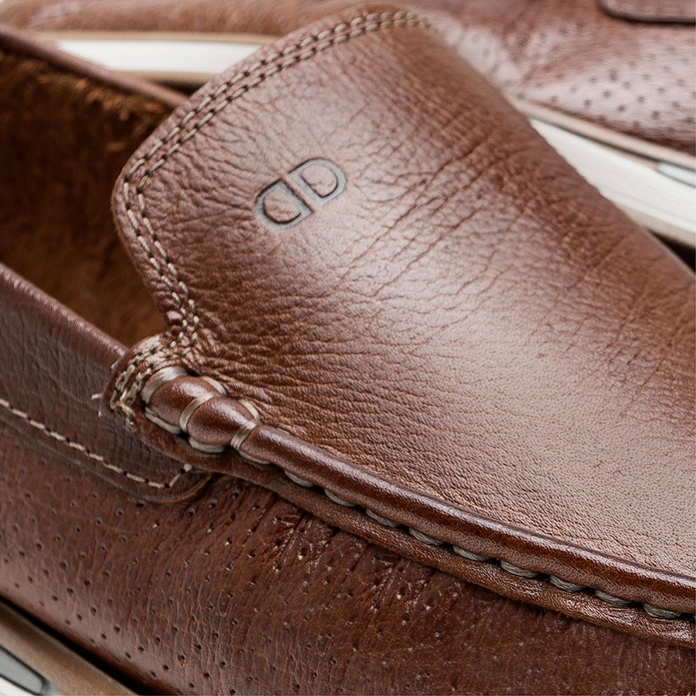 O Mocassim Denim Flow é confeccionado em couro na cor conhaque. Possui detalhe em perfuros nas laterais do cabedal, que tem a parte frontal costurada a mão, palmilha fixa ao calçado e bico arredondado.Linha Denim: liberdade para transitar em diferentes situações e estar bem vestido. Contemporâneo, despojado, confortável e perfeito para o uso no dia a dia.