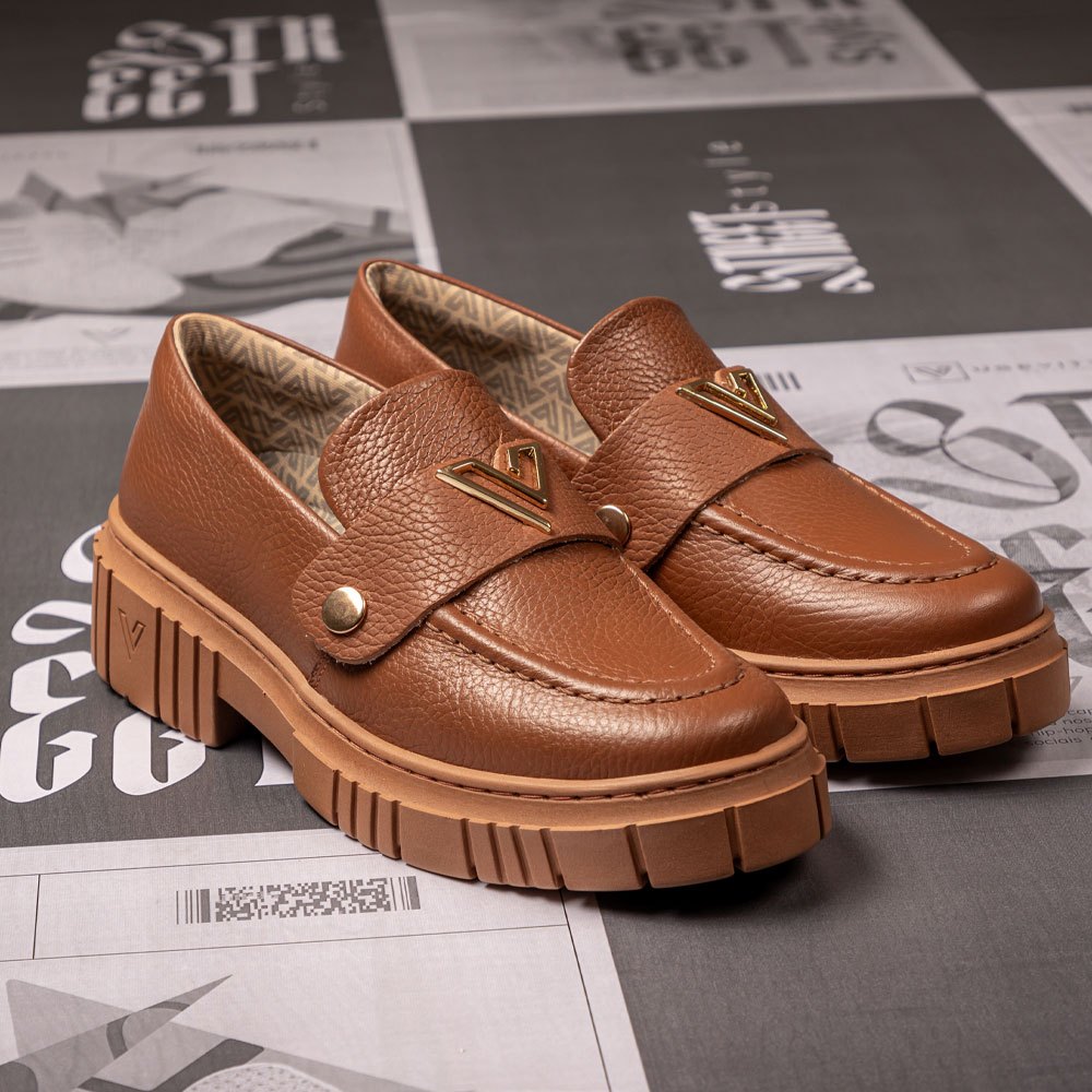 Mocassim Feminino Couro Legítimo Vittal Kit com 3 Fivelas Removíveis Marrom Caramelo