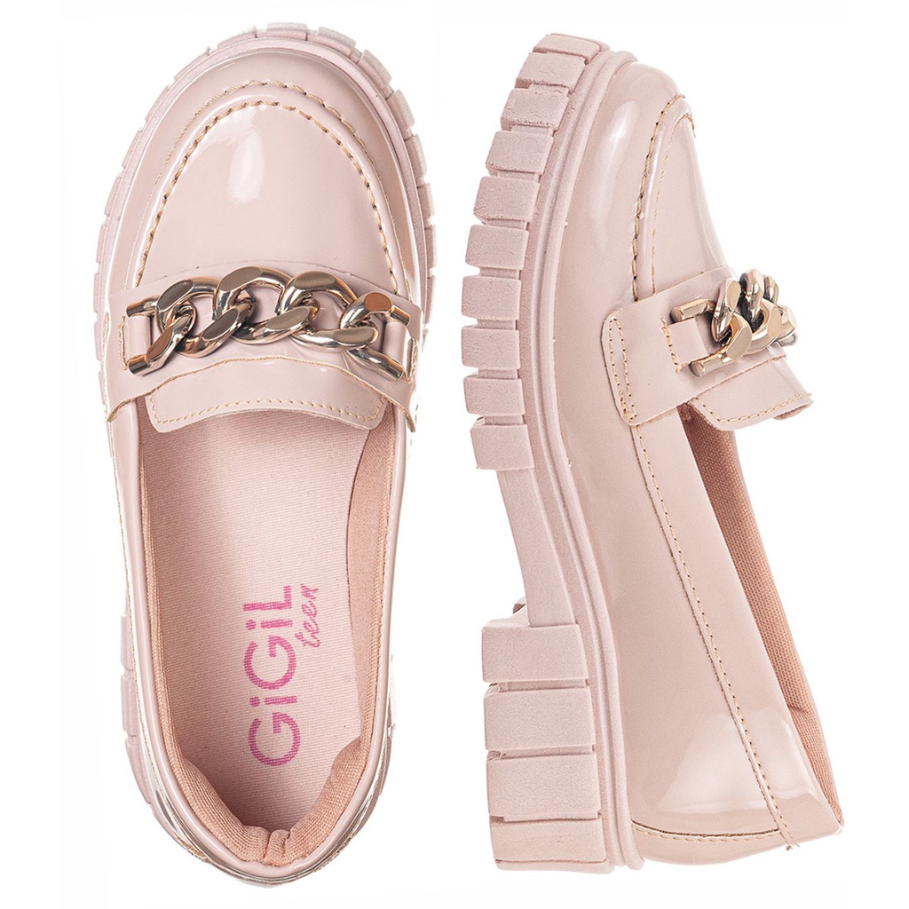 Mocassim Feminino GiGiL Teen Tratorado Sapato Fivela Flatform Calce Fácil Detalhe Confortável Moda Atual
