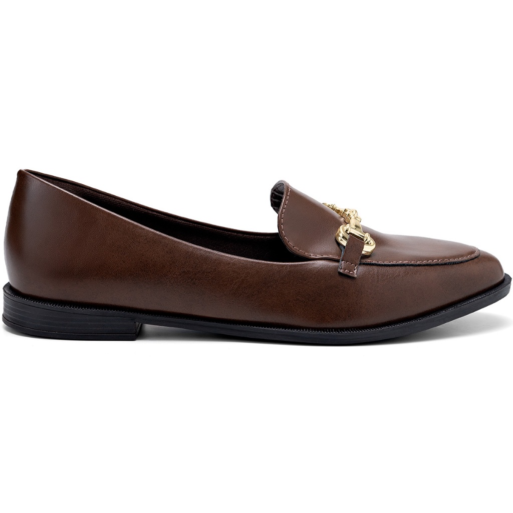 Mocassim Feminino Lumiss Bico Redondo Confortável Enfeite Metalizado Marrom