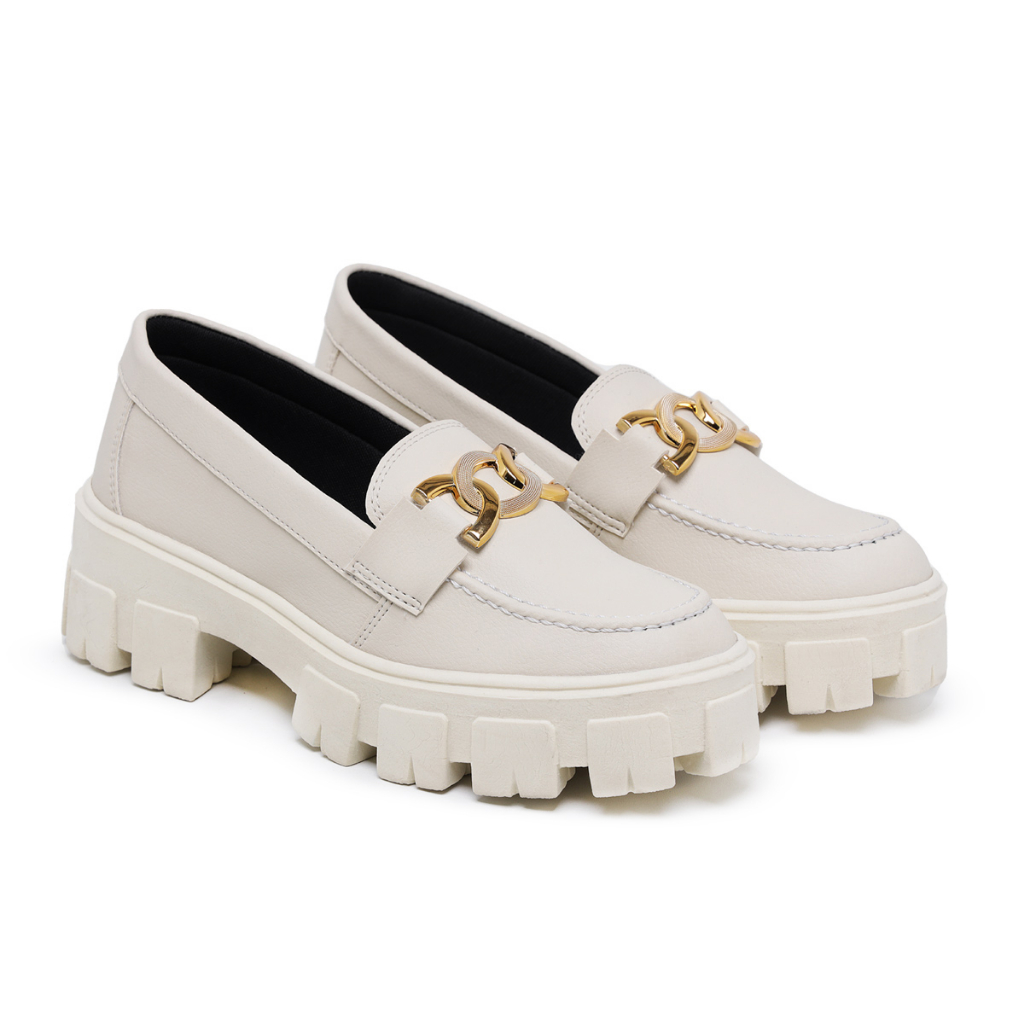 Mocassim Feminino Oxford Off White Tratorado Plataforma Blogueira Falcucci