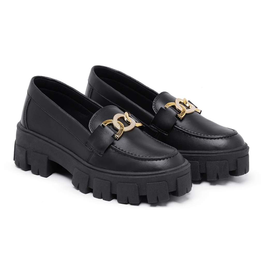 Mocassim Feminino Oxford Preto Tratorado Plataforma Blogueira Falcucci