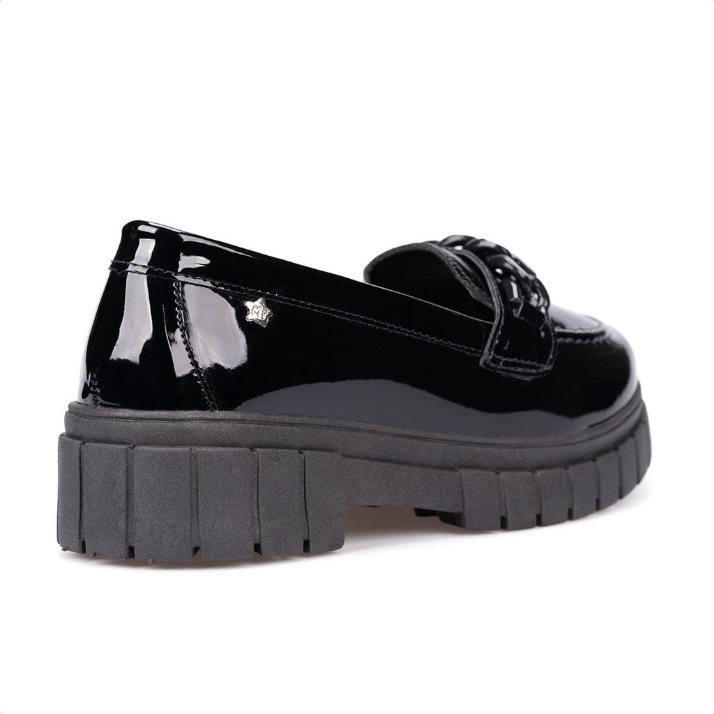 Mocassim Infantil Menina Fashion Verniz Com Corrente Sola Tratorada Da Moda