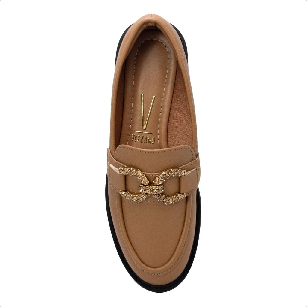 Vista a elegância e a versatilidade da Vizzano com este mocassim! Ele é a escolha perfeita para você sair e arrasar com diversos looks todos os dias, se sentindo confiante em qualquer desafio. Seu cabedal é feito em material resistente e napa floather, com costuras aparentes e um detalhe feito em strass para um toque de sofisticação. Traz um calcanhar acolchoado e palmilha macia para maior conforto. O calçado conta com um salto de cerca de 3cm, permitindo estabilidade e um estilo autêntico. Aproveite!