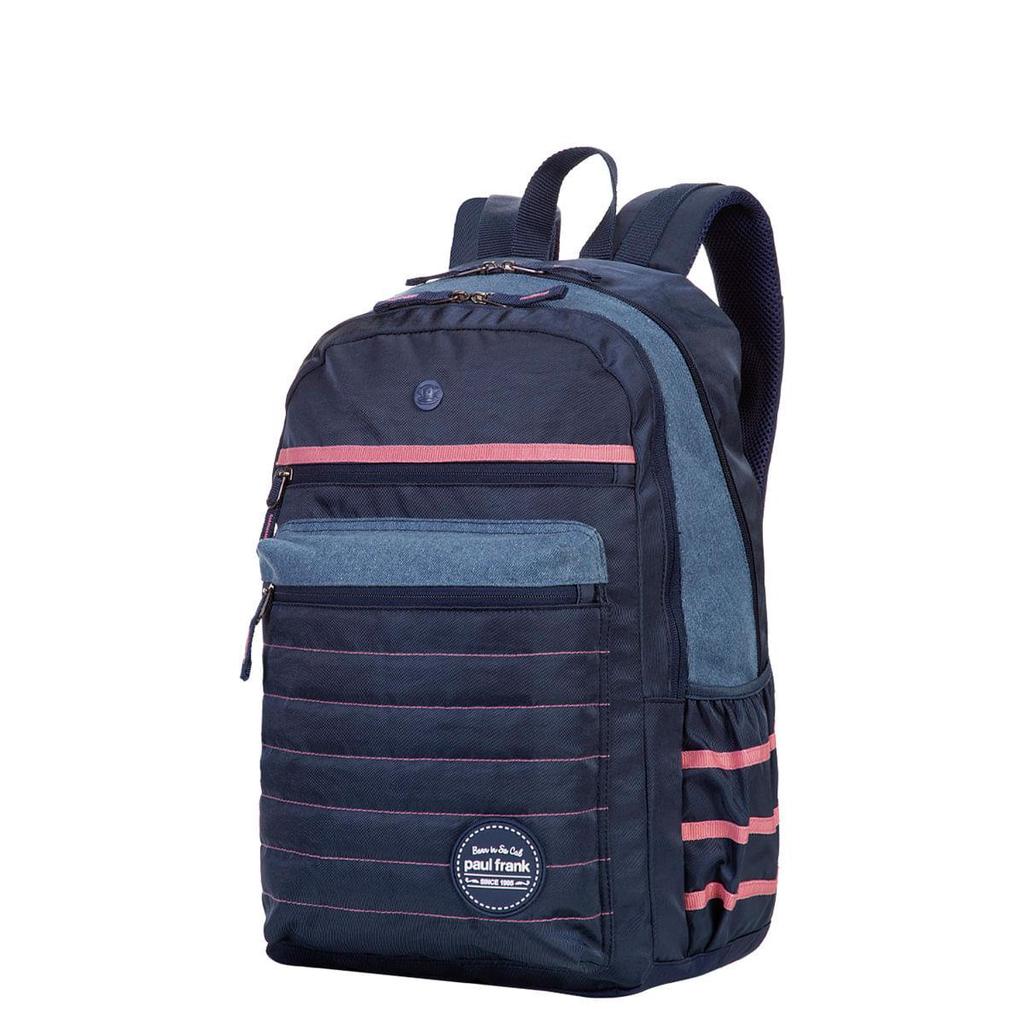 Para rodar o mundo, essa é a sua nova mochila! A coleção da Paul Frank Azul - Jeans traz tons de azul com detalhes em rosa claro que dão um ar descontraído e jovem, características da marca californiana. Com dois bolsos frontais e dois compartimentos, este modelo ainda tem bolsos laterais com rede, alça de mão em cadarço e alça de costas espumadas.
