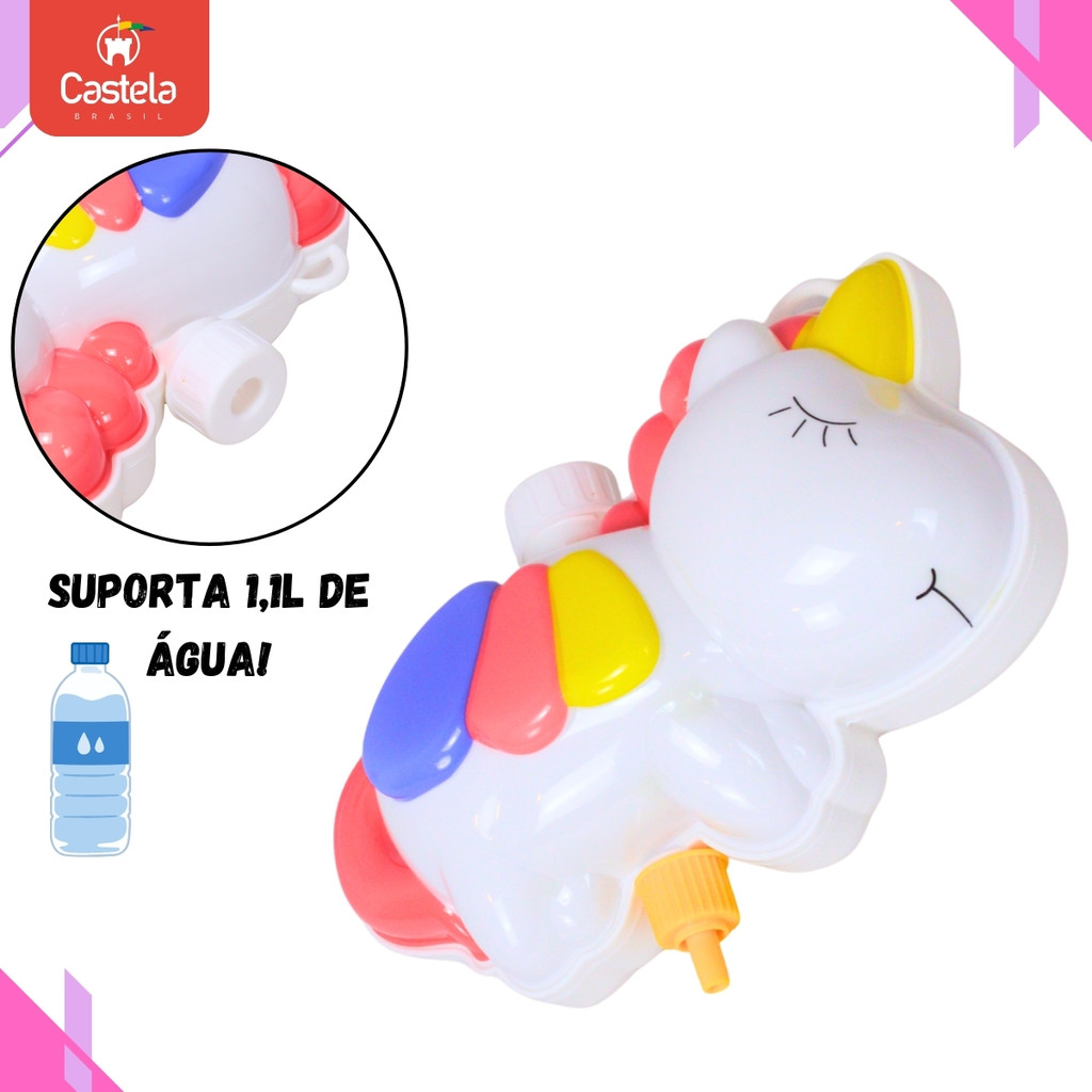 CARACTERISTICAS DO PRODUTO: Transforme o banho de sol ou o dia na piscina em uma aventura espacial cheia de risadas e brincadeiras refrescantes! A Mochila Lança Água Manual Unicórnio da Castela é o brinquedo perfeito para crianças que adoram explorar e se divertir ao ar livre. Suporta até 1,1L de Água. CARACTERÍSTICAS TÉCNICAS: Conteúdo da Embalagem: 01 Mochila Lança Água manual Unicórnio. Dimensões Aproximadas do Produto: 9cm x 23cm x 24cm.(Altura x Largura x Comprimento/Profundidade). Dimensões Aproximadas da Embalagem: 11cm x 24cm x 25cm.(Altura x Largura x Comprimento/Profundidade). Material/Composição: Plástico. Idade Mínima Recomendada: A partir de 3 anos. Participantes: A partir de 1 pessoa Alimentação: Não se aplica Marca :Castela Referência:CBS0731. Outras informações: As cores podem variar entre as imagens mostradas acima e o produto. Imagens meramente ilustrativas. Aviso: As informações e imagens divulgadas são de total responsabilidade do fabricante/fornecedor. Produto lacrado e disponível a pronta entrega para todo Brasil! APROVADO PELO INMETRO