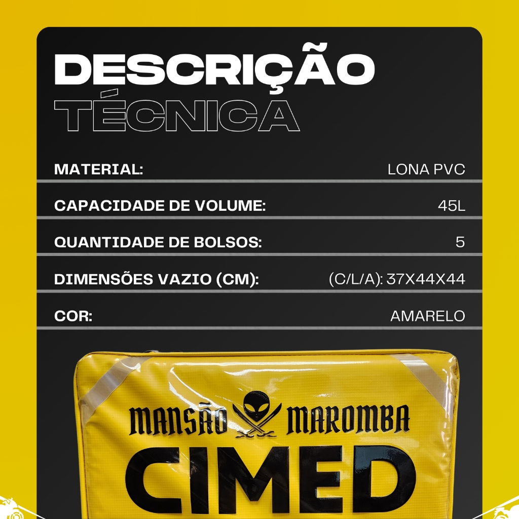 GALPÃO MOTOPARTS EM PARCERIA COM MANSÃO MAROMBA E CIMED CONTEÚDO EMBALAGEM: • 1x Bag Impermeável Cimed 45L Amarela Mansão Maromba CARACTERÍSTICAS: • Tamanho: A 37cm x L 44 cm x P 44 cm; • Bag expansiva de cor Amarela; • Caixa de isopor revestida com fita laminada aluminizada; • Mochila com alças reforçadas; • Mochila com material Lona PVC; • Suporta 7 garrafas pet 2 litros; • Suporta até 6 pizzas 35 x 35 cm; Produzido com melhores equipamentos garantindo segurança e durabilidade, oferecendo o melhor custo beneficio, unindo qualidade e eficiência na sua utilidade. !!!!!!!!!!!!!!! FOTOS MERAMENTE ILUSTRATIVAS !!!!!!!!!!!!!!! SOBRE NOSSA EMPRESA: Somos uma organização com anos de experiência no mercado. Seja você um apaixonado por velocidade, um aventureiro de estrada ou um entusiasta da personalização, cumprimos a missão de fornecer peças e acessórios da mais alta qualidade para elevar sua experiência de pilotagem a um novo patamar. UTILIZE O CAMPO DE PERGUNTAS PARA TIRAR SUAS DÚVIDAS, e apenas confirme a compra em caso de CERTEZA de compatibilidade do produto! CÓDIGO : COD_42727