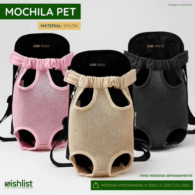 | Mochila Bolsa Canguru Transporte Pet Cachorro Gato este produto | R$ 47,99 | 12% | 4.9/5 | 86 |