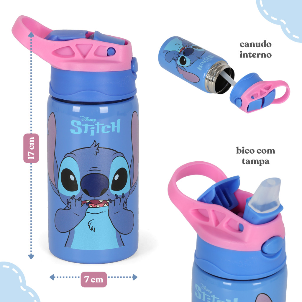 Mochila Bolsa Escolar Mala Costas Pelúcia Garrafa Squeeze Água Stitch Angel Original Infantil