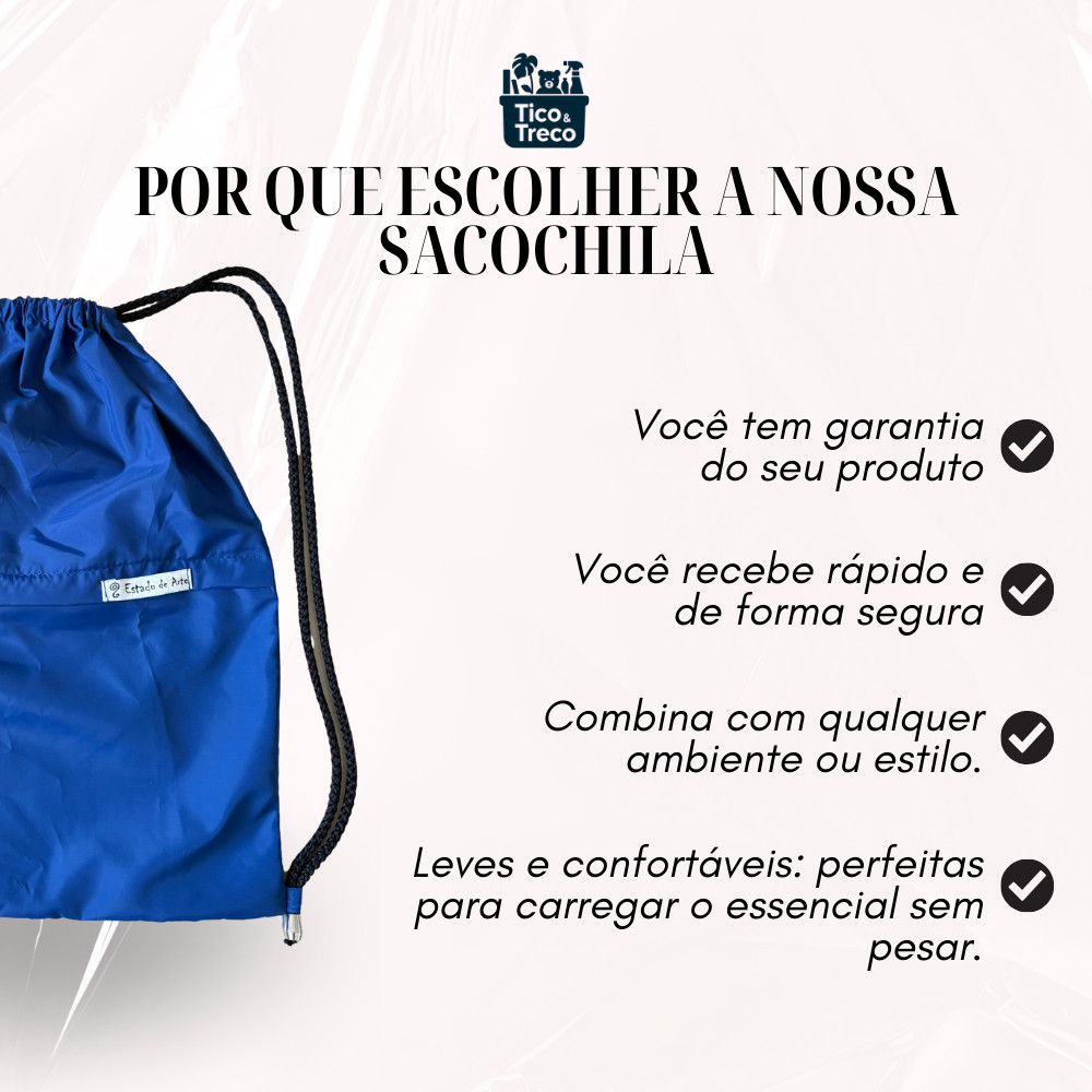🎒Mochila – Impermeável, leve e perfeita para o seu dia a dia! Se você busca praticidade, estilo e durabilidade no dia a dia, a Sacochila Estado de Arte é a escolha certa. ✅ Feita em nylon impermeável, ela mantém seus itens protegidos da chuva, respingos e da umidade com total segurança — sem perder leveza e conforto. ✨ Por que você vai amar: • Material resistente e impermeável: ideal para academia, praia, caminhadas, viagens e uso diário. • Bolso frontal com zíper: perfeito para guardar celular, carteiras, chaves e outros itens essenciais com facilidade e segurança. • Fechamento prático por cordão: abre e fecha rápido, sem complicação. • Alças reforçadas e ajustáveis: confortáveis até em longos períodos de uso. • Design esportivo e moderno: combina com qualquer look e dá um toque de estilo em qualquer ocasião. 💡 Ideal para: • Academia • Praia e piscina • Passeios, viagens e caminhadas • Rotina urbana • Quem ama leveza + estilo + praticidade 🎯 O que torna essa sacochila indispensável: • ✔ Super leve — você nem sente que está usando! • ✔ Versátil — vai com você do treino ao trabalho, da cidade ao fim de semana. • ✔ Visual atualizado — elegante, discreta e cheia de personalidade. • ✔ Perfeita para a vida moderna — cabe tudo o que você precisa, sem volume e sem peso. 🌟 Disponível nas cores: Preto | Pink | Marinho (Escolha a sua e arrase!) 📏 Medidas: 32 X 33 cm (O tamanho ideal para sua rotina!) 💥 Garanta agora a sua Sacochila Estado de Arte e leve seu estilo para todos os lugares! Tico & Treco Variedades — praticidade e estilo no seu dia a dia. ✨