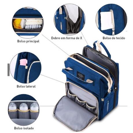 Mochila Bolsa Maternidade Térmica que vira Berço Multifunções Impermeável MY001