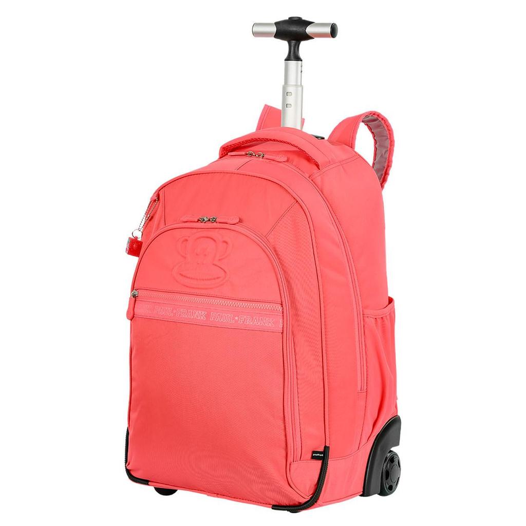 Mochila Carrinho 2 Compartimentos Paul Frank Classics Neon Laranja - Papaya possui carrinho embutido em alumínio, alças de costas espumadas e reguláveis, cantoneira de proteção, bolsos laterais em tela com elástico, puxador personalizado, alça de mão espumada e compartimento para alças. Você ainda ganha um chaveiro do simpático macaquinho Julius para enfeitar sua mochila (as estampas e desenhos são sortidos, conforme a disponibilidade do chaveiro, não sendo opcional a escolha do modelo).