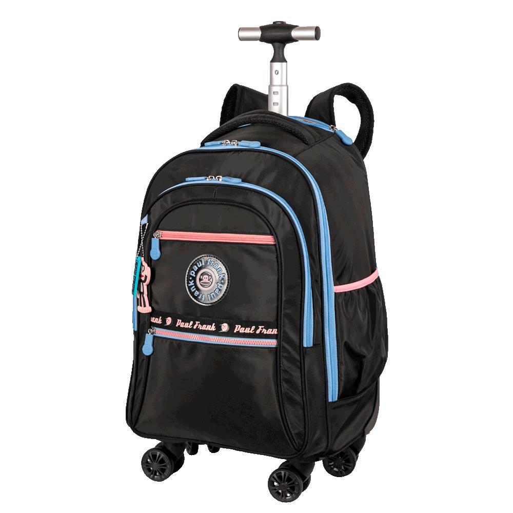 Mochila Carrinho 4 Rodas Duplas Paul Frank Fun - Preto e Rosa