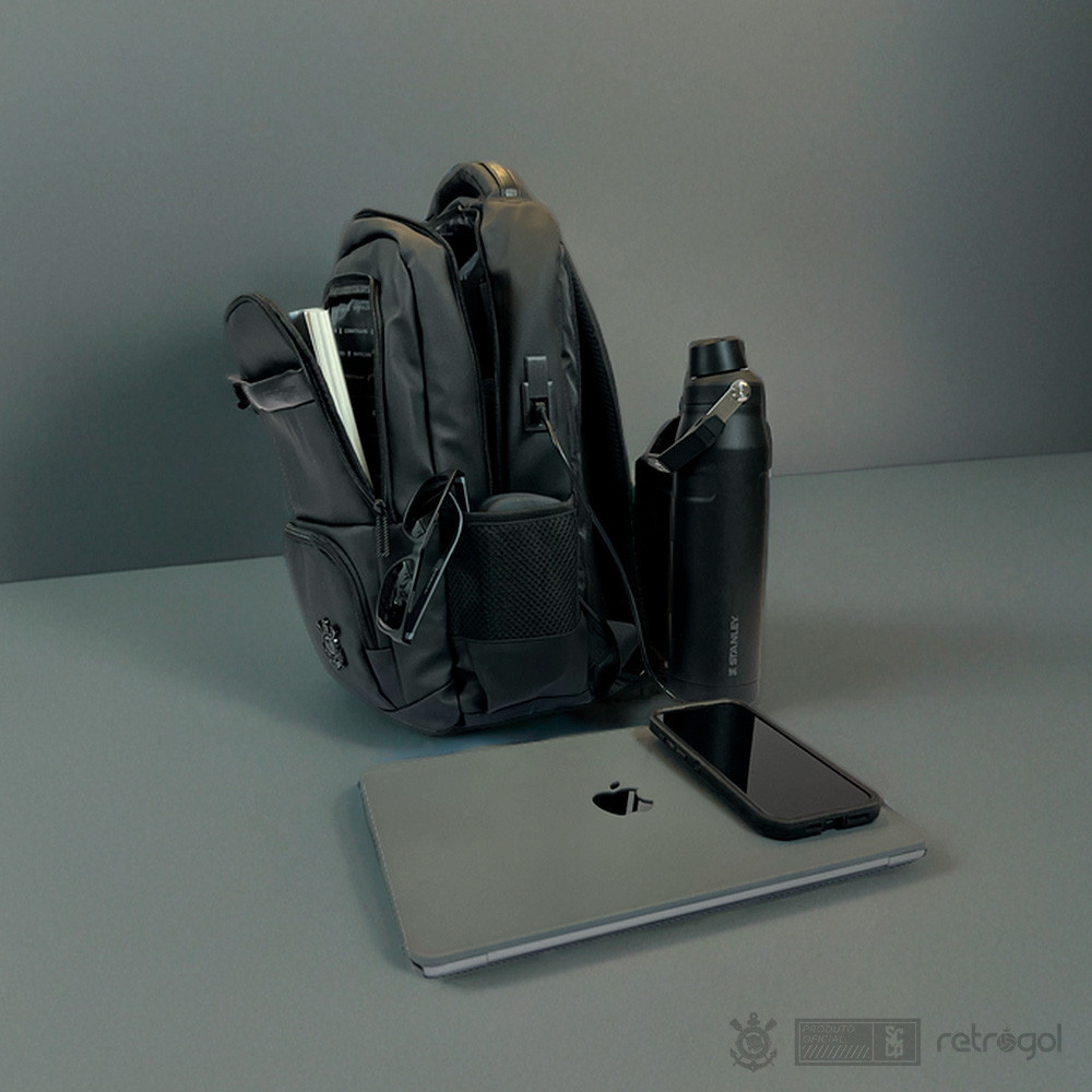 Exiba sua paixão pelo Corinthians com estilo e praticidade! Revestimento em couro sintético que garante um visual sofisticado e durável. Conta ainda com um bolso traseiro de acesso rápido para laptop, um bolso lateral com ímã para garrafa d'água e uma área frontal espaçosa. Com entrada de energia para conectar o powerbank, permite carregar dispositivos em trânsito. A Mochila Corinthians Player é perfeita para o dia a dia, seja para trabalho, estudos ou momentos casuais, combinando elegância e funcionalidade. -- Características: - Fabricada em 100% Poliéster - Revestimento em 100% Poliuretano. - Amplo Espaço Interno - Alças acolchoadas - Para uso esportivo, casual e escolar - Todos produtos a pronta entrega - Envio imediato - Garantia contra defeitos de fabricação - Produto Licenciado Oficial
