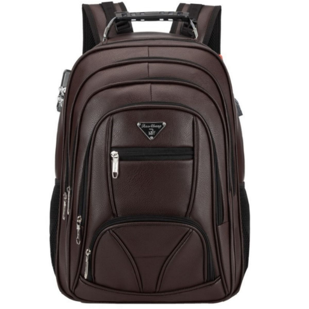 Mochila Couro PU Gigante Executiva Para Notebook Trabalho Faculdade Reforçada Antifurto Senha Cabo De Aço USB