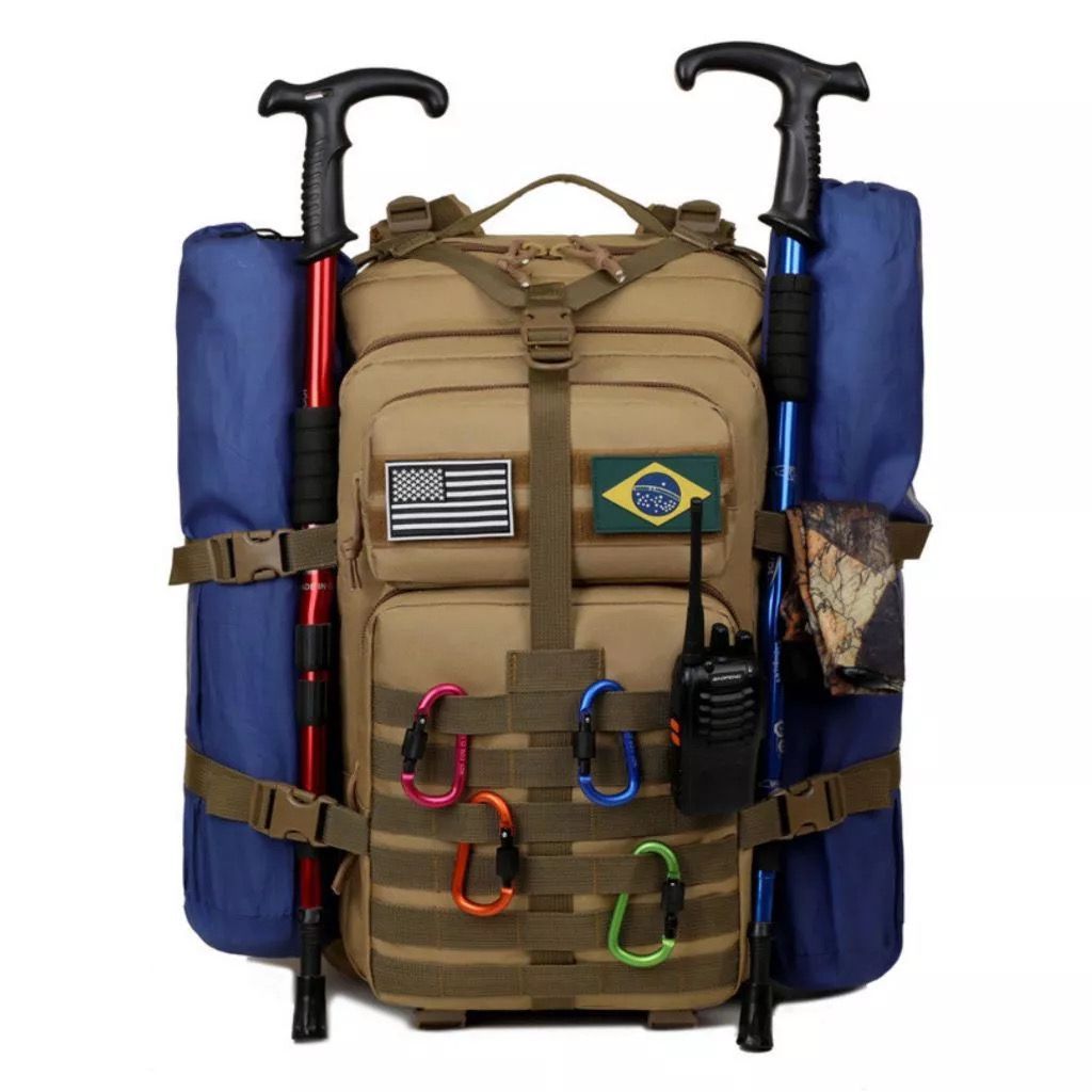 NVISTA NA MELHOR QUALIDADE PARA SUAS AVENTURAS AO AR LIVRE! Descubra por que nossos clientes estão encantados! Leia as avaliações e comprove a excelência dos nossos produtos. Não se contente com menos, nós somos importadores comprometidos com a mais alta qualidade. Antes de finalizar sua compra, verifique cuidadosamente o nome e a foto da variação desejada. Queremos garantir que você receba exatamente o que espera. Esta mochila é a escolha ideal para suas jornadas ao ar livre. Reunindo qualidade, durabilidade e um design inovador, ela se destaca como a companheira perfeita para qualquer aventura. O compartimento principal conta com fechamento por cordão, além de zíperes na parte inferior e superior para acesso rápido e fácil. Com divisórias internas e bolsos laterais com zíper, bem como bolsos telados para garrafas, esta mochila oferece amplo espaço para guardar todos os seus itens essenciais. Além disso, possui uma tampa superior com bolso fechado por zíper e um bolso frontal médio com o mesmo fechamento, garantindo praticidade e organização. As alças de costas super acolchoadas e a parte traseira com espuma de alta densidade proporcionam máximo conforto, enquanto os cintos abdominais e laterais de compressão mantêm sua carga segura e bem distribuída. Não esqueça das alças laterais na parte traseira, ideais para prender objetos pequenos que precisam de acesso rápido. Com esta mochila impermeável, adequada para camping, acampamentos e diversos esportes ao ar livre, você poderá desfrutar de suas aventuras com total confiança, sabendo que seus itens estão protegidos. Características: Capacidade de 50 litros. Feita de material selado de 700D náilon, durável e resistente à água. Cinto largo e grosso para máximo conforto ao transportar cargas pesadas. Alça de mão e alça de ombro ajustável para versatilidade de transporte. Perfeita para esportes ao ar livre, como camping, caminhadas, trekking, entre outros. Conta com cinta na altura do abdômen para melhorar a postura e segurança.