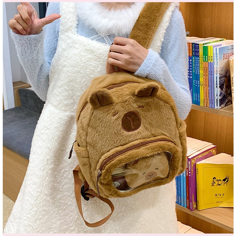 Mochila De Capivara com Formato de Pelúcia Fofa e Macia Kawaii Alta Qualidade