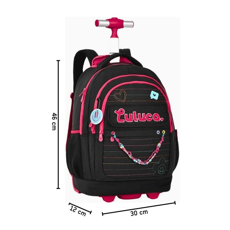 Se você busca estilo, praticidade e economia em uma mochila , a mochila Escolar Luluca é a escolha perfeita para começar o ano letivo com tudo! Ideal para meninas modernas e organizadas, essa mochila premium combina design encantador, funcionalidade e qualidade superior em cada detalhe. A Mochila de Carrinho LU24606 é um verdadeiro destaque: espaçosa, versátil e repleta de recursos que tornam a rotina mais prática e organizada. Com duas opções de uso (carrinho ou costas), ela conta com alças ajustáveis, proteção para as rodinhas e compartimentos amplos, incluindo divisória acolchoada para notebook. Além disso, os detalhes em matelassê colorido, patches atoalhados e chaveiro de miçangas trazem um toque exclusivo ao visual. Dimensões: 48cm x 34cm x 21cm - Altura máxima: 97cm Código de Barras: 7908040476577 Garantia do vendedor: 7 dias Garantia do fabricante: 3 meses Produto novo, original, lacrado e acompanhado de Nota Fiscal.