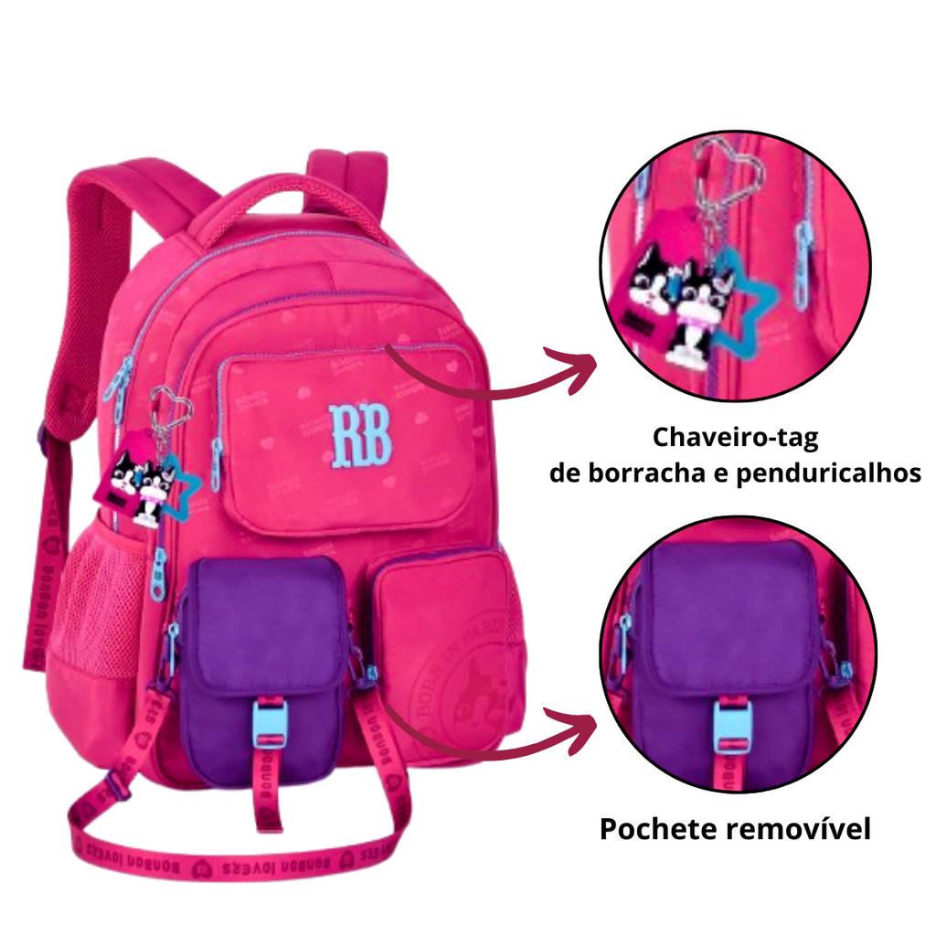 Mochila de Costas com Bolsinha Removível Rebecca Bonbon Urban Mix - Clio Style Despacho Rápido: Pedidos feitos até as 11:00 hrs (SEG a SEX) serão enviados no mesmo dia! DETALHES E FUNCIONALIDADES: MOCHILA: Tamanho : Mochila de 17,5 polegadas (44x33x14cm) Material:Confecionado em material soft Compartimentos: 02 Bolsos grandes,2 pequenos ,1 bolso antifurto, alça carona,compartimentos para garrafas e compartimento para laptop. Acessórios : Chaveiro tag de borracha, mascote 3D e Bolsinha removivel com visor transparente para celular GARANTIA DO FABRICANTE CLIO MATERIAIS DE PRIMEIRA QUALIDADE PRODUTO AUTÊNTICO DA MARCA CLIO STYLO LINHA: REBECCA BONBON