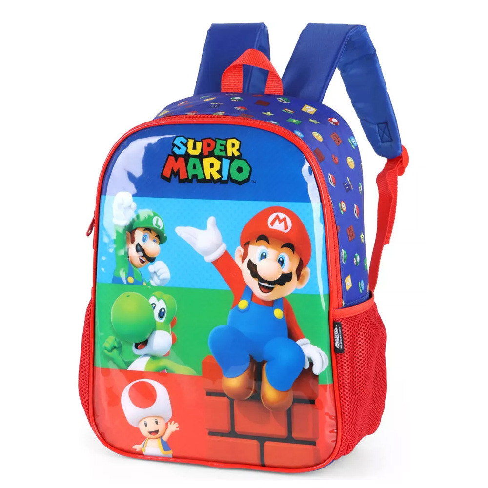 Mochila de Costas Escolar Infantil Super Mario Bros Luigi: perfeita para fãs do universo Mario, esta mochila traz um design divertido com estampa vibrante do Luigi, tornando o dia a dia escolar ainda mais empolgante. Confeccionada em materiais de alta qualidade, oferece espaço ideal para organizar livros e acessórios, unindo praticidade e o charme dos personagens icônicos em uma peça cheia de estilo. Características; Ocasião: Escolar, dia a dia, passeio Alça de mão Alça de costas acolchoada reforçada 1 Compartimento 2 Bolsos laterais para garrafas Etiqueta de identificação nas costas Estampa do Super Mário e Luigi Produto oficial e licenciado pela Nintendo Especificações; Material: Poliéster / PVC Dimensões: 40 x 30 x 14cm (A x L x P) Capacidade total: 16L