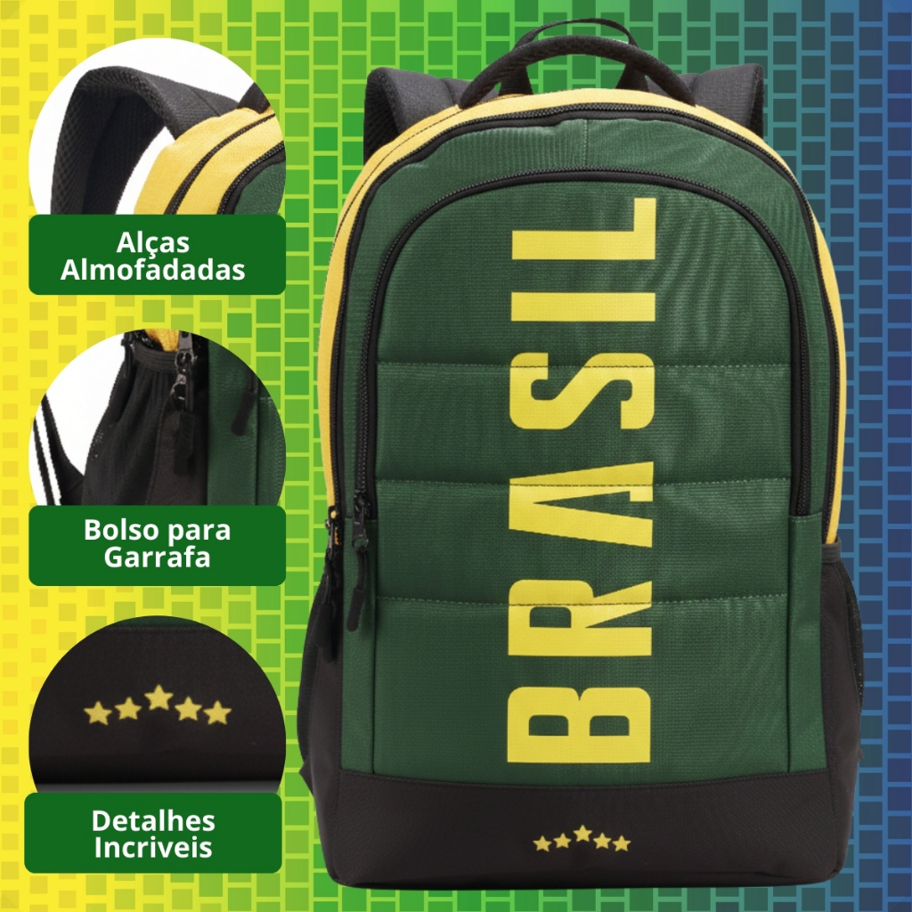 | Mochila De Costas Masculina Porta Notebook Esportiva Brasil Copa Do... este produto | R$ 97,90 | 35% | 4.9/5 | 7 |