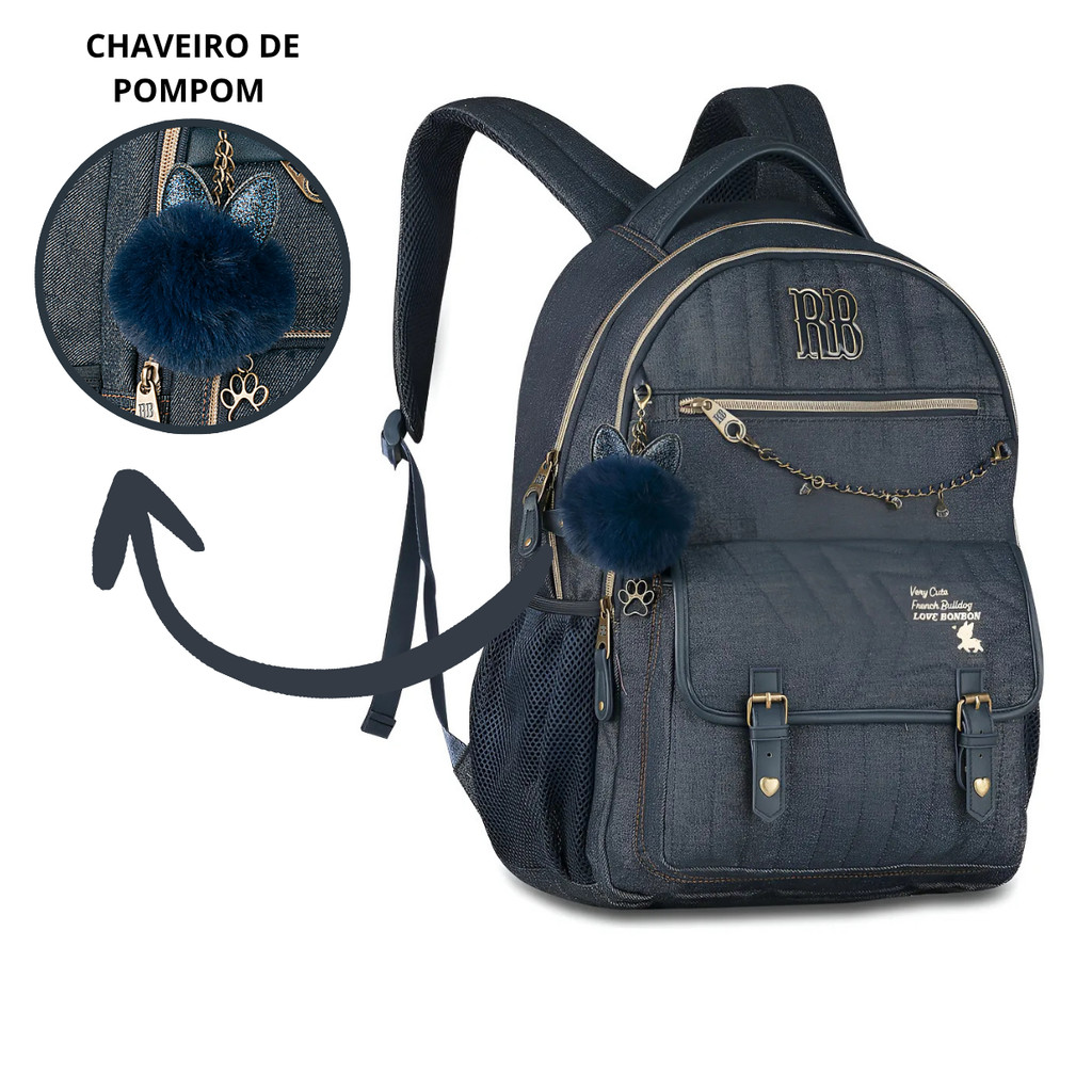 MOCHILA DE COSTAS FEMININA JUVENIL REBECCA BONBON JEANS- CLIO STYLO Despacho Rápido: Pedidos feitos até as 11:00 hrs (SEG a SEX) serão enviados no mesmo dia! DETALHES E FUNCIONALIDADES: MOCHILA: • Práticos 02 Bolsos Laterais para Garrafa • 03 Bolso com Zíper Estratégicos • Zíper Metalizado para um Toque de Estilo • Ziper Metalico Com Acessorios • Acessorios 1 Pompom 1 Chaveiro da Rebecca Bonbon e 1 Pingente • Alça Confortável para Uso nas Costas MATERIAIS DE PRIMEIRA QUALIDADE: Este Produto é meticulosamente confeccionado com nylon e poliéster, incorporando sutis detalhes em tecido impermeável. Os acabamentos incluem um toque de luxo com acolchoamento e zíper de alta qualidade. PRODUTO AUTÊNTICO DA MARCA CLIO STYLO LINHA: REBECCA BONBON