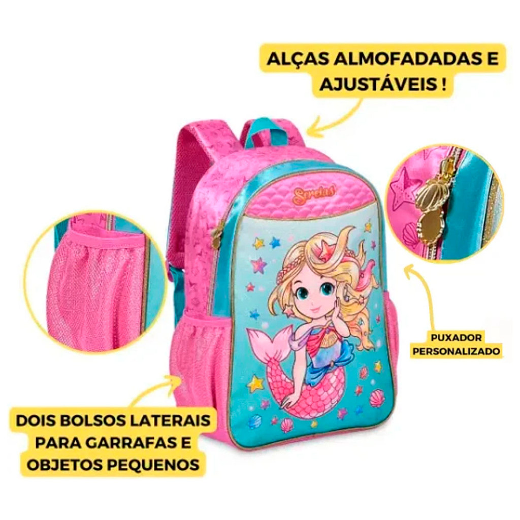| Mochila de Costas Sereia Menina Infantil Grande Escolar este produto | R$ 78,99 | — | 5.0/5 | 21 |