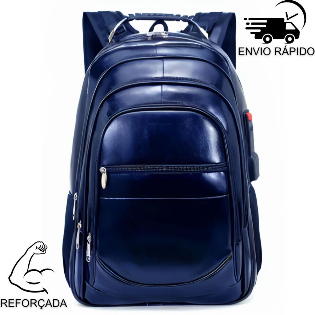 - Produto à Pronta Entrega (em SP) - Enviamos sua compra em até 24h - Atendimento Personalizado e Educado :: DESCRIÇÃO DO PRODUTO ABAIXO (leia toda a descrição antes de comprar) LANÇAMENTO!!! Mochila Grande linda confeccionada em maleável resistente a água de design moderno e bem espaçosa. Ótimo tamanho para ser usada em qualquer ocasião, desde trabalho, escola ou passeio. Com excelente acabamento e costura, essa mochila é perfeita para o dia a dia Possui alça de mochila ajustável, compartimento para notebook. Para quem quer uma mochila espaçosa sem perder o estilo. INFORMAÇÕES / MATERIAL: - Confeccionada em Couro sintético - Forração interna em poliéster - Alças de ombro ajustáveis e reforçadas - Alça de mão com reforço - 04 compartimentos com fechamento em zíper - 01 compartimento para guardar notebook - 02 bolsos laterais abertos (porta garrafa) - Forro Antitranspirante na parte das costas e alças OBSERVAÇÕES: 1- Garrafa não acompanha o produto. 2- Suporta aproximadamente 15 quilos. 3 - O emblema da mochila, o formato do zíper e disposição dos bolsos podem variar, dependendo do fornecedor. As características principais como cor, tamanho, litragem, medidas, quantidade de bolsos sempre serão iguais. 4- Não acompanha cadeado. Fechamento em zíper. 5- Resiste a água, suportando até 20 minutos de chuvas leves. Conteúdo da embalagem: 6- Não contém entrada para cabo USB. Mochila Bolsa Masculina/Feminina Grande Couro (1 un) ::PRAZO DE ENVIO Dependendo do horário enviamos no mesmo dia, ou no máximo em até 24h (em dias úteis), após a confirmação do pagamento. Mais rápido impossível. :: ATENDIMENTO Caso tenha dúvidas, utilize o campo de perguntas. Possuímos uma equipe altamente qualificada para respondê-las rapidamente. :: PÓS-VENDA Não tenha dúvidas! Nós vendemos BEM para vendermos SEMPRE! Conte com nosso atendimento em horário comercial sempre que precisar. :: DICAS DE COMPRA 1. Leia todo o anúncio antes de comprar. 2. Verifique se seus dados de contato estão atualizados no momento da compra. 3. Confira o seu endereço de recebimento, pois não temos como alterá-lo.