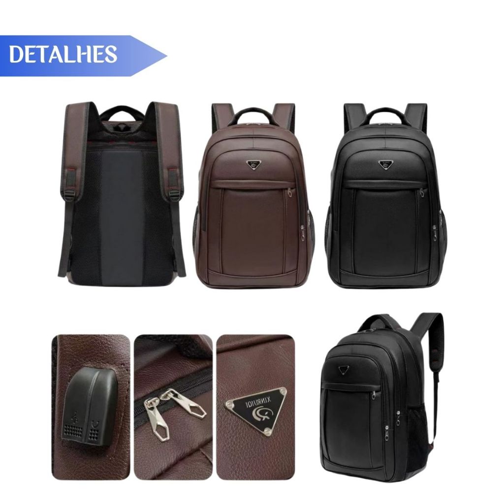 - Produto à Pronta Entrega (em SP) - Enviamos sua compra em até 24h - Atendimento Personalizado e Educado ATENÇÃO: Verifique o tamanho das mochilas antes de comprar para que não haja reclamação. :: DESCRIÇÃO DO PRODUTO ABAIXO (leia toda a descrição antes de comprar) Mochila De Couro Grande Média Impermeável Trabalho Faculdade Mochila de Couro Unissex com certeza é sua melhor escolha. Essa ótima mochila é desenvolvida e pensada em cada detalhe para que todo seu espaço seja aproveitado, cheia de utilidades, a mochila conta com material resistente que proporciona muito mais durabilidade e mais conformo para quem a leva nas costas, podendo ter vários ajustes para que o peso não fique desconfortável pois possui almofadas macias em suas alças. Além de todo conforto e espaço interno ela é resistente a água, suportando até 20 minutos em chuvas, e anti UV que dá muito mais tempo de vida útil para sua mochila, e o seu segredo está em seu material usado na sua fabricação que permite com que seja diferenciada em seu mercado. Não perca a oportunidade de conhecer e aproveitar este excelente produto enquanto durarem os estoques! MOCHILA UNISSEX EM COURO SINTÉTICO DE ALTA QUALIDADE Ideal para o uso no dia a dia como trabalho, escola, passeio etc... CARACTERÍSTICAS: 1- Mochila Confeccionada em couro sintético de alta qualidade. 2- Possuí de 3 a 4 bolsos com zíper. 3- Dois bolsos laterais para garrafinha de água (fina). 4- Puxador em cabo de aço. 5- alças de costa regulável com fivelas. 6- interior forrada em material têxtil nylon com ótimo acabamento e desenhada. Couro sintético resistente de alta durabilidade, que proporciona segurança e tranquilidade na hora de enfrentar a rotina do dia a dia. 7- Compartimento para guardar seu celular, canetas, notebook, tablet, cadernos, livros, agendas e muito mais... 8- Zíperes com fechamento de alta qualidade , Proporcionando maior durabilidade e segurança. 9- Possuí compartimento para Notebook 10- A Mochila grande possuí entrada para cabo USB. 11- A mochila pequena possuí cabo de aço na alça. :::OBSERVAÇÃO::: O emblema da mochila, o formato do zíper e disposição dos bolsos podem variar, dependendo do fornecedor. As características principais como cor, tamanho, litragem, medidas, quantidade de bolsos sempre serão iguais. Medidas da mochila Média: - 40 cm de altura - 30 cm de largura - 20 cm de profundidade Medidas da mochila Grande: -50 cm de altura -50 de largura -28 de profundidade ::PRAZO DE ENVIO Dependendo do horário enviamos no mesmo dia, ou no máximo em até 24h (em dias úteis), após a confirmação do pagamento. Mais rápido impossível. :: ATENDIMENTO Caso tenha dúvidas, utilize o campo de perguntas. Possuímos uma equipe altamente qualificada para respondê-las rapidamente. :: PÓS-VENDA Não tenha dúvidas! Nós vendemos BEM para vendermos SEMPRE! Conte com nosso atendimento em horário comercial sempre que precisar. :: DICAS DE COMPRA 1. Leia todo o anúncio antes de comprar. 2. Verifique se seus dados de contato estão atualizados no momento da compra. 3. Confira o seu endereço de recebimento, pois não temos como alterá-lo.