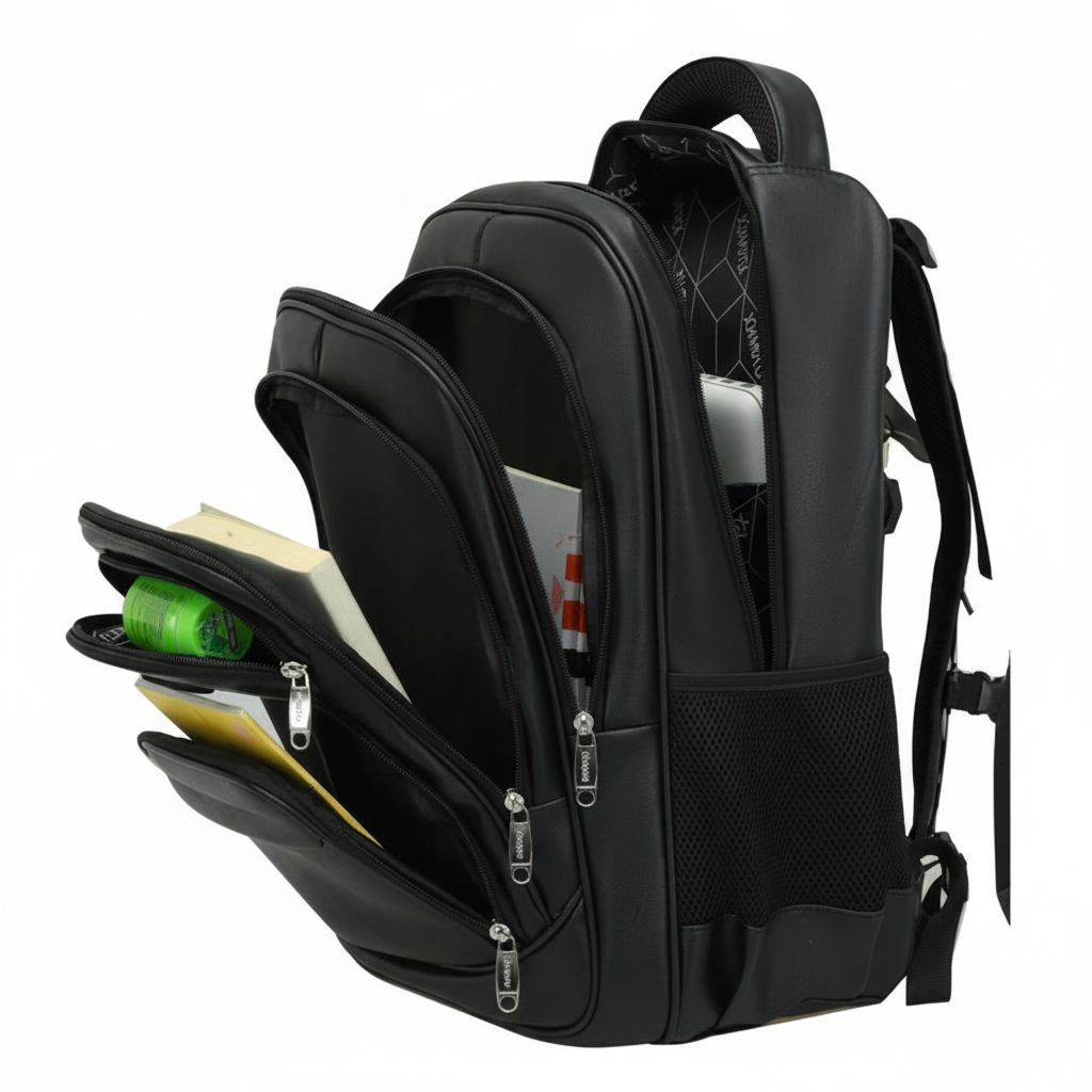 Mochila reforçada com ótima qualidade e acabamento, ideal para o seu dia a dia, trabalho, faculdade, escola, viagens, passeios.... Enfim pode carregar todos seus pertences tranquilamente, pois seu tamanho é ótimo para todas as ocasiões e claro contém um espaço especial reservado para seu notebook. Suas principais características: - Confeccionada em Couro sintético e impermeável. - Alças de ombro ajustáveis e reforçadas. - Alça de mão com cabo de aço e silicone. - 05 ou 06 compartimentos com fechamento em zíper sendo 1 deles o zíper duplo. - 01 compartimento interno para notebook. - 02 bolsos laterais abertos (porta garrafa, guarda chuva, objetos diversos). - Sistema antifurto com senha. - Forro antitranspirante na parte das costas e alças. Medidas do Produto - Altura 49 cm - Largura 34 cm - Profundidade 21 cm