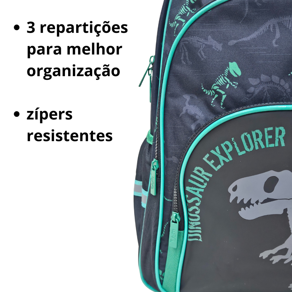 Mochila de Dinossauro Mochila juvenil com estampa divertida de dinossauro, perfeita para o dia a dia escolar. Possui 3 divisórias espaçosas que ajudam a organizar livros, cadernos e acessórios, oferecendo praticidade e conforto. Ideal para quem busca estilo, organização e resistência em uma só mochila. ESPECIFICAÇÕES -Material: Poliester -Cores: Verde, Azul -Indicado para: 7 a 13 anos -Tamanho: 42cm altura X 30cm largura X 16cm espessura Envio imediato em dias úteis! Garanta já o seu antes que acabe! LOJA LUMIX PRESENTES E BIJUTERIAS — +10 anos de confiança no mercado!