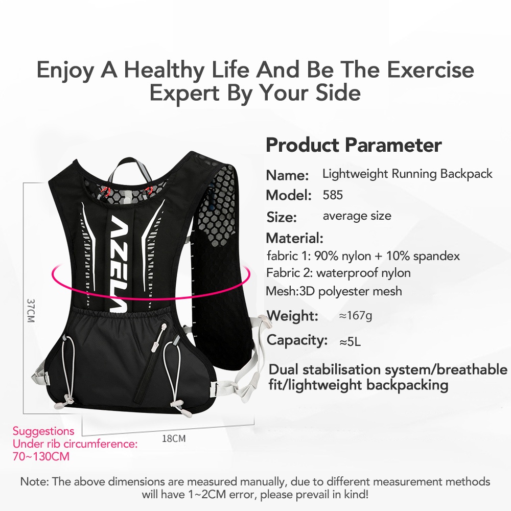 Parâmetros do produto】 Nome: Mochila de corrida leve Tamanho do tamanho: 37*18 cm Peso: cerca de 167g Sugestões sob circunferência da costela: 70~130cm Material :Partela +Material :90% nylon +10% Spandex + nylon impermeável À prova d'água: Sim Cor da Cor: Preto/ Laranja Capacidade de cerca de 5L Cenas: Ciclismo, Escalada, Viagens, Caminhadas, Marathon, corrida do país cruzado Características】 1.Tecido de nylon resistente a rasgos. 2.Pode ser carregado em dois sacos de água de 500ml e 2L. 3.Painel traseiro acolchoado respirável, alça de sternum ajustável e alça de ombro. Bordas de material macio e macio para minimizar o atrito no corpo. 4.Projetado com bolsos com zíper para armazenar itens valiosos. 5.Design leve, pesando apenas 167g.