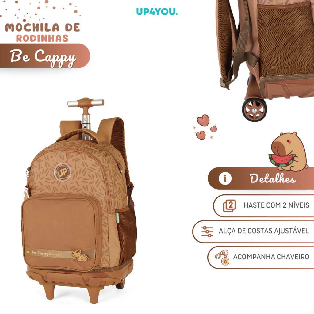 Mochila De Rodinhas Capivara Escolar Juvenil Original Up4you