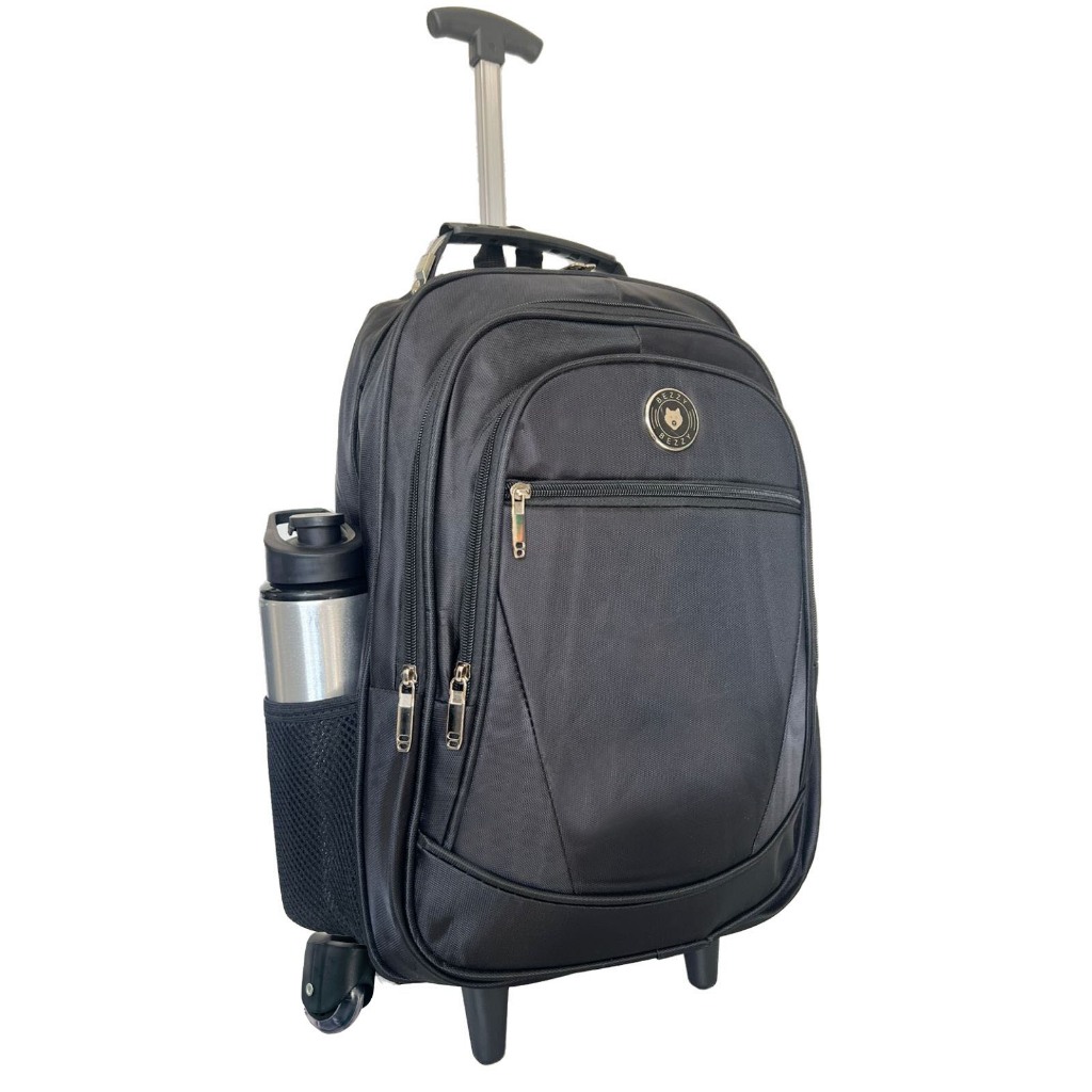 Mochila de Rodinhas BEZZTER : Estilo, Resistência e Versatilidade A mochila de rodinhas é perfeita para quem busca praticidade e elegância no dia a dia! Feita com material impermeável ( Resiste até 30 mim em chuvas) e de alta qualidade, esta mochila é ideal para uso escolar, no trabalho ou para diversas outras ocasiões. Com costuras reforçadas, ela oferece a durabilidade necessária para o transporte seguro de seus itens, mantendo-os protegidos em qualquer condição. Destaques do Produto: - Impermeável: Protege seus pertences da chuva e umidade por até 30 minutos. - Rodinhas de Alta Qualidade: Mobilidade fácil e sem esforço. - Versatilidade: Perfeita para escola, trabalho e viagens. - Costuras Reforçadas: Garantia de resistência e durabilidade. - Design Moderno e Sofisticado: Estilo e funcionalidade em um só produto. - Com espaço de sobra para seus pertences, esta mochila é sua companheira ideal para todas as ocasiões, mantendo tudo organizado e seguro. - Pode ser usada por crianças ou adultos, altura da haste ajustável. Dimensões aproximadas: Altura: 50 cm Largura: 36 cm Profundidade: 22 cm Altura máxima com puxador estendido: 97 cm Observações: A garrafa exibida é apenas ilustrativa e não acompanha o produto. TESTAMOS TODOS OS ZÍPERES E COSTURAS ANTES DE ENVIAR. PRODUTO NOVO PRODUTO ORIGINAL PRODUTO COM NOTA FISCAL ENVIO IMEDIATO