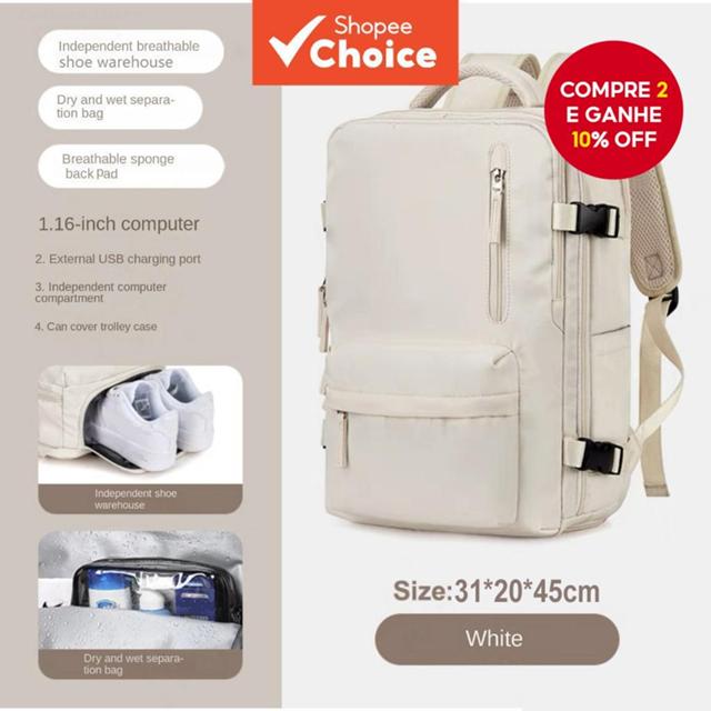 Catalogado na subcategoria Mochilas de Notebook (de Bolsas Femininas), Mochila de Viagem Feminina | Multifuncional, Resistente à Água, Bolsa para Laptop Expansível, Design Reforçado está à venda na Shopee Brasil por R$ 79,46 (21% de desconto sobre o preço original de R$ 100,58). Nota 5.0 de 5 na Shopee e 1 unidade vendida, este produto se destaca pelo excelente custo-benefício.